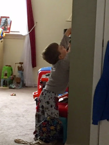 Then there are times he surprises us... He pulls himself up and then let goes and stands on his own or he gets himself out of his bed and room somehow.